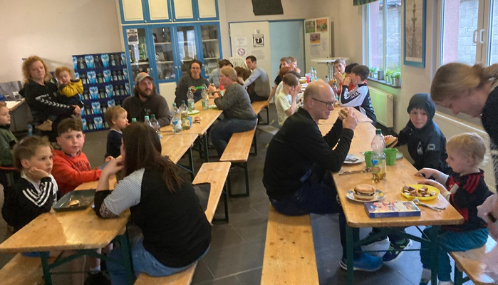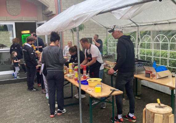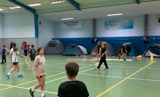 In weiser Voraussicht hatten die Verantwortlichen für das traditionelle Pfingstzeltlager kurzfristig entschieden, selbiges in diesem Jahr in die Robert-Wolff-Halle zu verlagern. Trotz des eher bescheidenen Wetters hatten die Kidis und auch die betreuenden Elternteile viel Spaß dabei. So konnten im Randbereich der Halle die Zelte aufgebaut, die Spielfläche immer wieder für Sport und weitere Aktivitäten genutzt und wenn es das Wetter dann doch mal zuließ, auch im Außenbereich gehämmert oder ein Lagerfeuer errichtet werden.