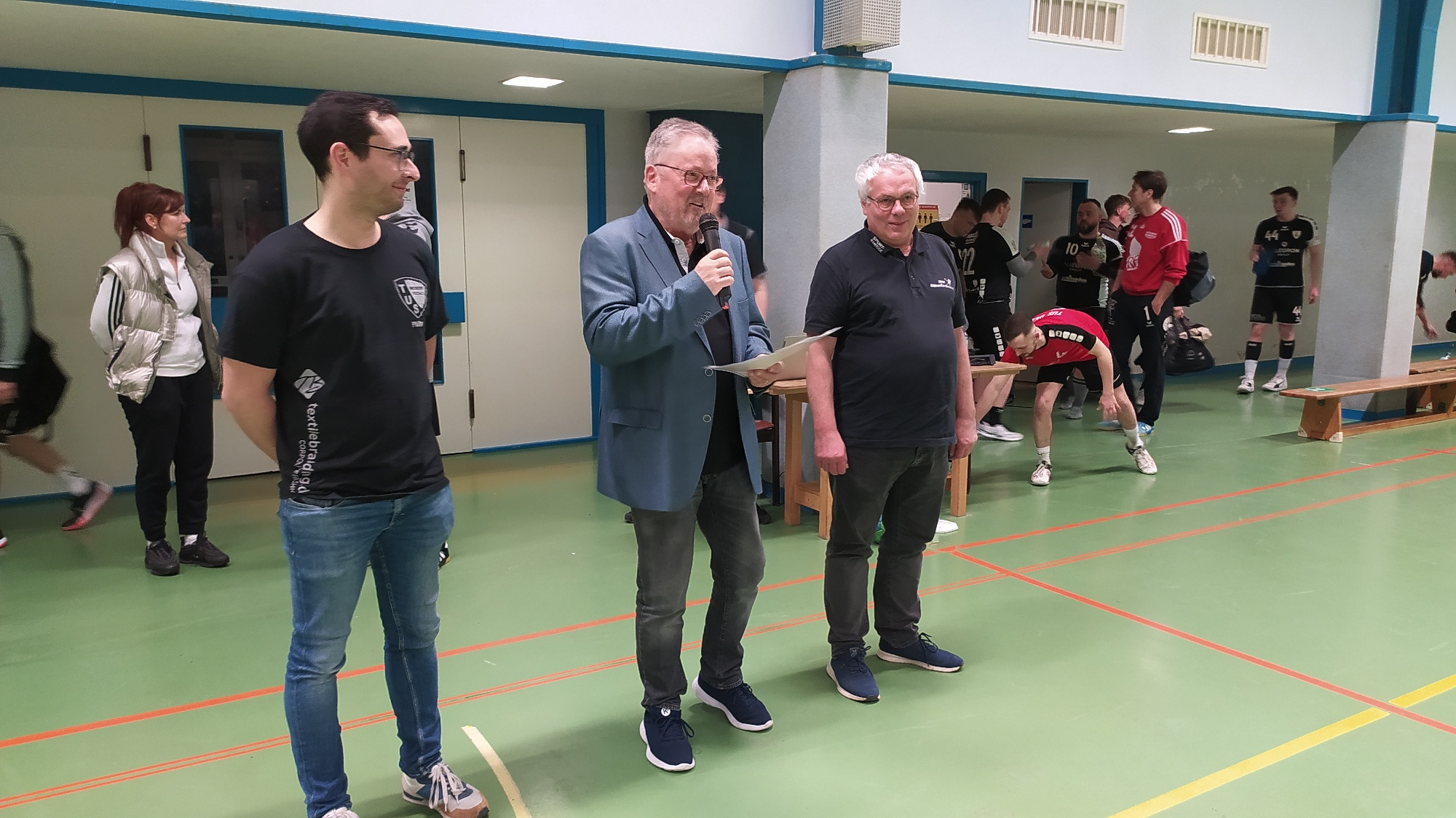 Pünktlich mit der Auftaktpartie zwischen dem TuS Weibern und GW Mendig startete die 26. Auflage des Robert-Wolff-Cups. Die Gastgeber erwischten einen starken Start und führten bereits nach elf Minuten mit 5:1. Doch in der Folge schlichen sich Konzentrationsfehler ein, und die Grün-Weißen standen in der 16. Minute kurz vor dem Ausgleich. Der TuS konnte sich jedoch wieder stabilisieren und einen Drei-Tore-Vorsprung herausarbeiten, der bis zum Schluss Bestand hatte – Endstand: 14:10.